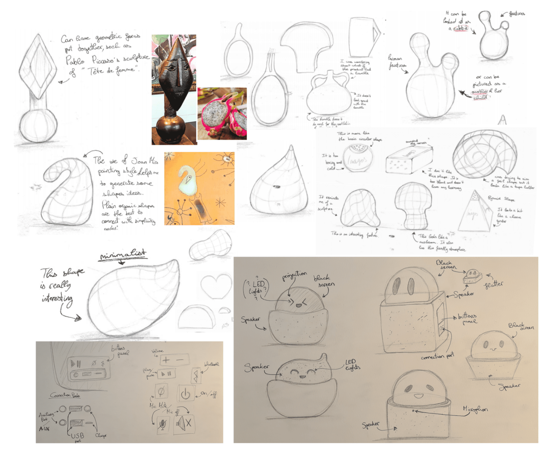 My first sketches were inspired by organic and food shapes based on Picasso sculptures. However, through my research, I decided to take a more minimalistic approach.